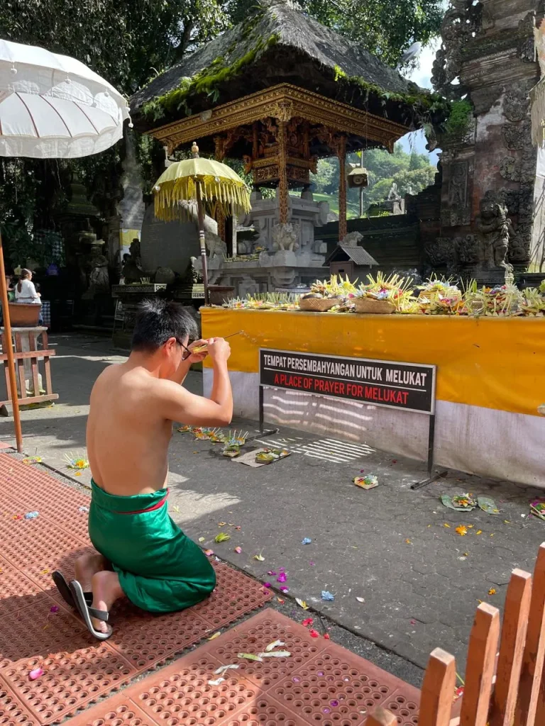 Embrace the sacred Balinese tradition of Melukat, a spiritual cleansing with holy water.